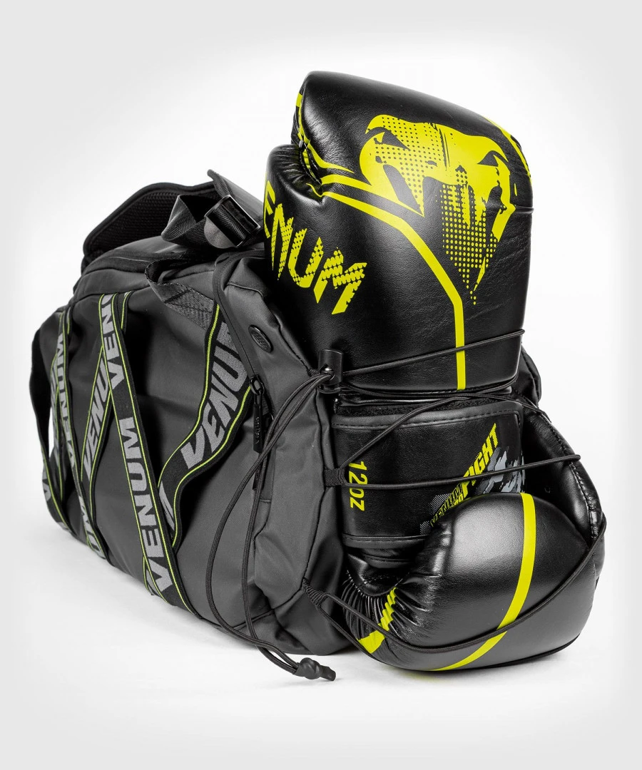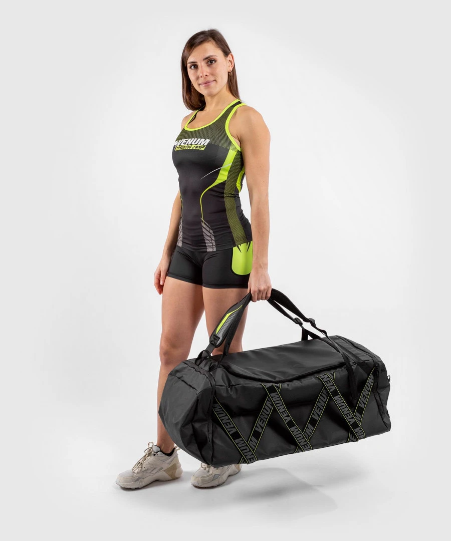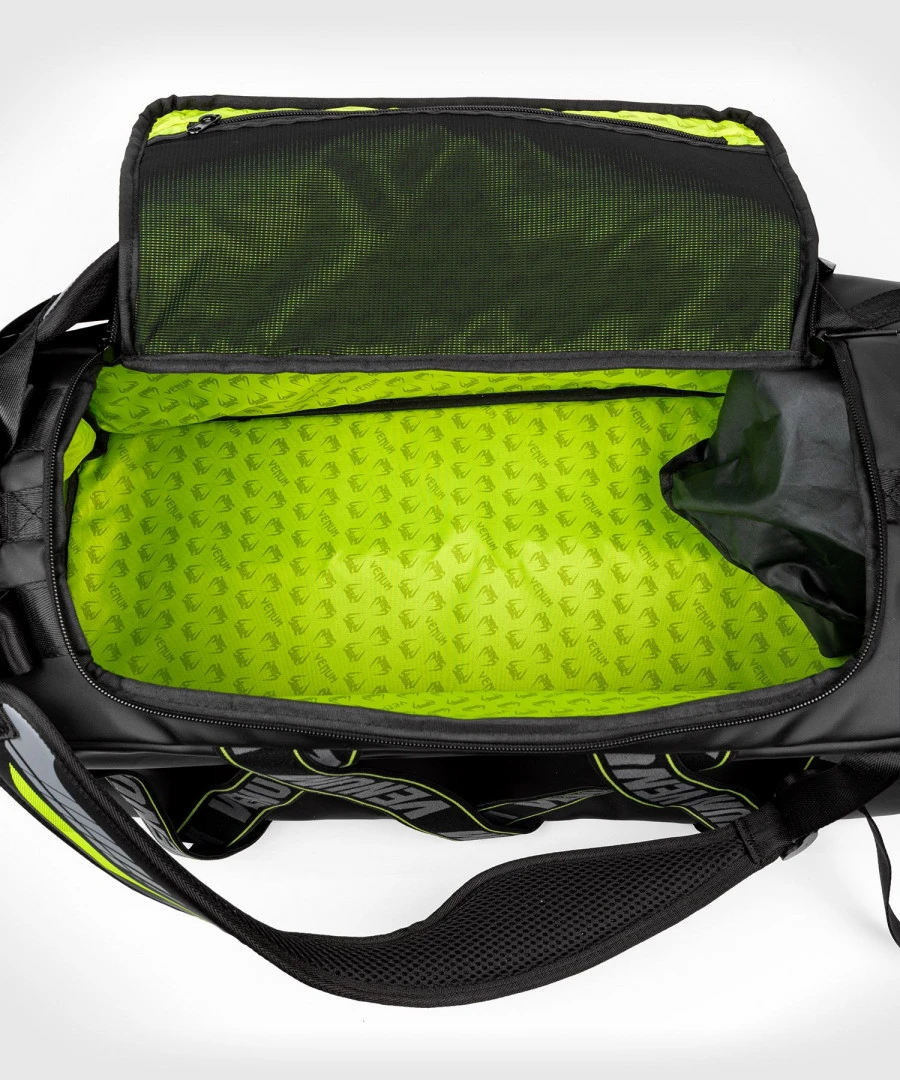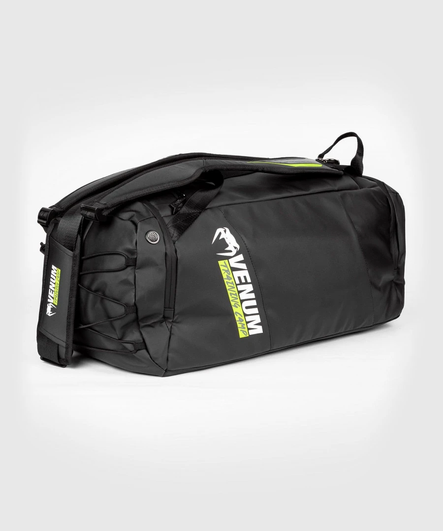 Ultra spaziosa ed ergonomica, la borsa sportiva Venum Training Camp 3.0 2 in 1 si trasforma in zaino a seconda delle tue esigenze: puoi portarla sulla schiena oppure a spalla, grazie alla pratica tracolla regolabile. Realizzata in Tarpolin, materiale estremamente solido e resistente, si distingue per la finitura opaca moderna ed elegante. Dotata di 3 tasche principali e tasca laterale, è perfetta per organizzare al meglio lo spazio. La tasca principale contiene una tasca interna in rete con zip; quella inferiore, traspirante, è ideale per le scarpe o la biancheria sporca; la tasca superiore offre un scomparto principale e due parti interne; infine le tasche laterali con zip sono ottime per gli oggetti più piccoli e leggeri.