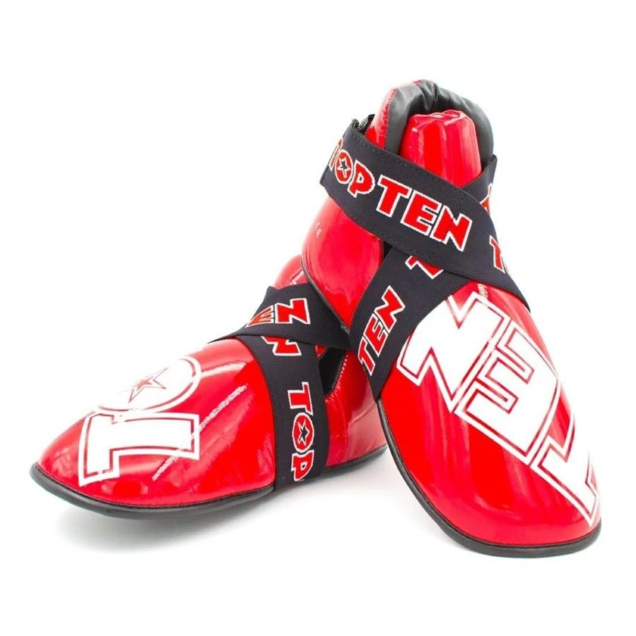 Indossa i calzari parapiedi Top Ten Ultra Light per muoverti in modo ancora più rapido mentre pratichi la kick boxing. L`imbottitura in schiuma PPS Super Shock Absorbent preformata ti offre un`ineguagliabile leggerezza e assorbe efficacemente i colpi. Top Ten ha rivisto la lunghezza dell’altezza del parapiede in zona caviglia, per migliorare l’uso dei parastinchi. Rivestiti in ecopelle, i calzari Ultra Light risultano confortevoli e resistenti. Gli elastici e la chiusura velcrata ti fanno percepire il calzare preciso e compatto, un tutt`uno con il piede. Omologati per le principali federazioni.