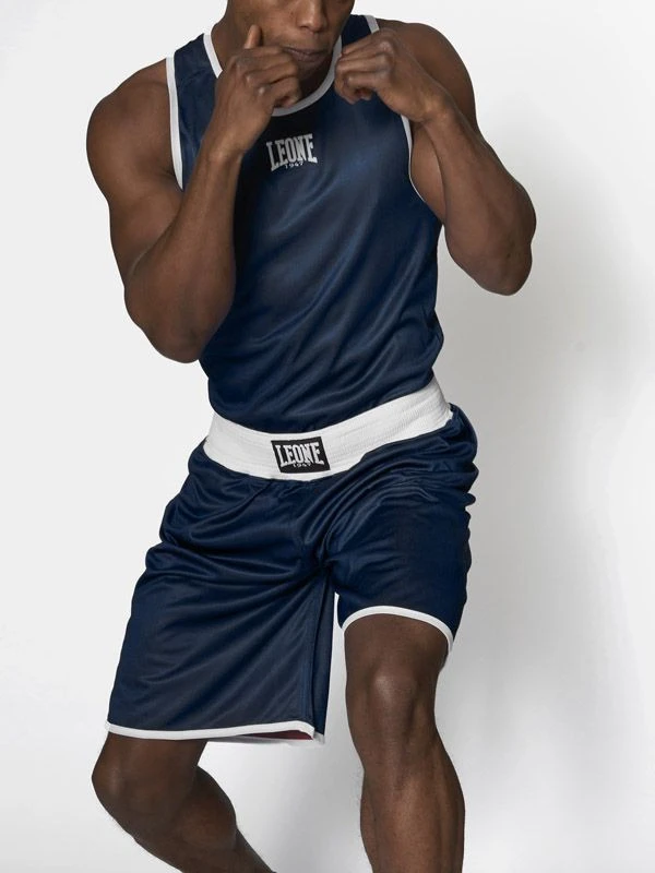 La Canotta da Boxe Leone Double Face AB214 è un modello classico di Leone 1947 che ritorna in grande stile dopo 5 anni di assenza. Indossa questa canotta reversibile per combattere in tutta libertà: l`apertura dorsale ampia agevola i movimenti. Il design pulito, i cordoncini bianchi a contrasto e le nuove colorazioni ti danno uno stile da protagonista sul ring. Il rosso e il blu hanno un tono più scuro rispetto ai tradizionali “angolo rosso” e “angolo blu”: una scelta cromatica originale per accompagnarti con eleganza ed energia durante i match.