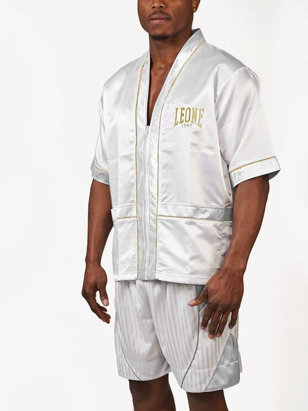 La Casacca maestro Leone Premium AB262 fa parte della linea Premium, progettata per conferire ai match un tocco di stile e una sfumatura di eleganza. Morbida e leggera, la casacca è realizzata in satin, confortevole e piacevole al tatto. Con maniche corte, zip frontale e tasche laterali, è ideale per i secondi che vanno all`angolo dei loro atleti. Il logo ricamato e i profili oro impreziosiscono il design del prodotto. Dotato di logo Leone sulla schiena, la Casacca maestro Leone Premium è disponibile in due colori: nero e bianco.