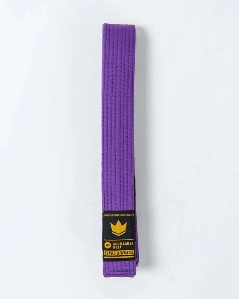 La Cintura Kingz Gold Label V2 esprime l`alta qualità per la quale il marchio Kingz è famoso in tutto il mondo. Realizzata in 100% cotone premium, si distingue per ottima resistenza e durata ma anche per un tocco di stile in più, grazie ai dettagli dorati sull`etichetta. Ideale per atleti di Brazilian Jiu Jitsu.