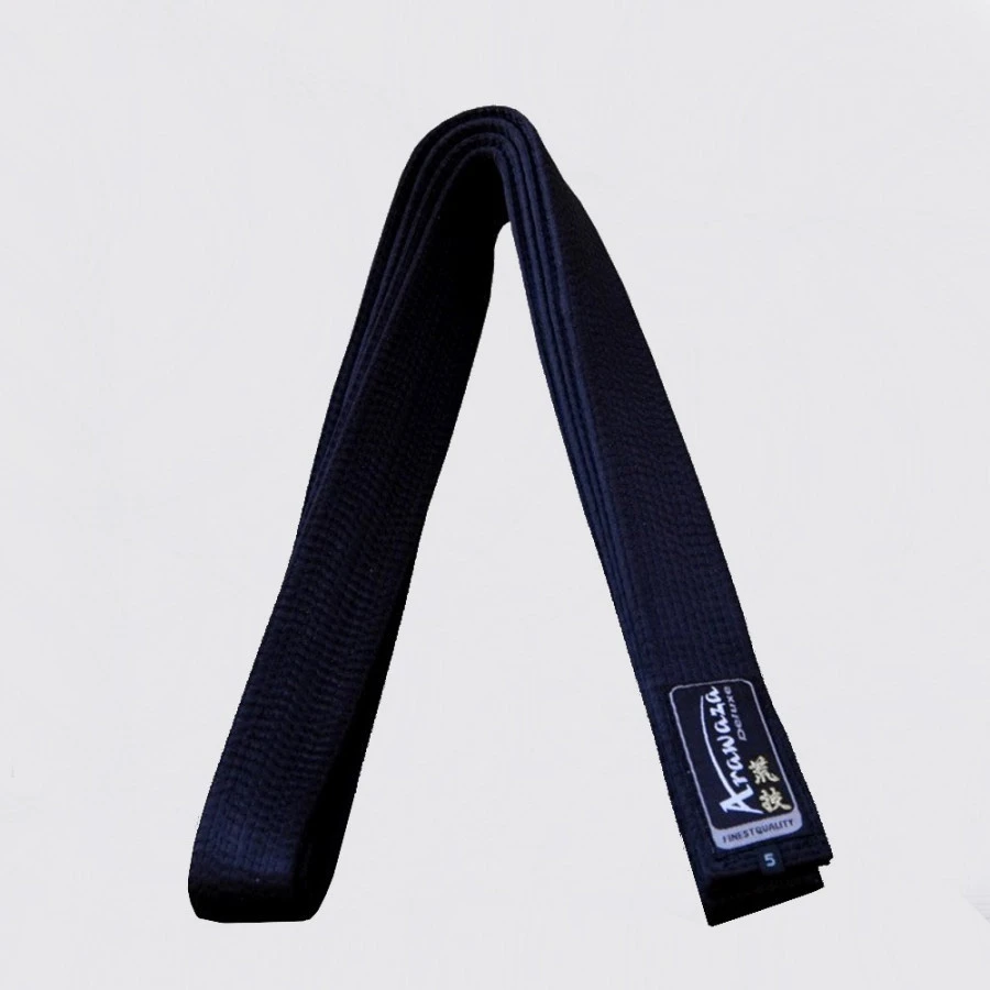 Una cintura nera di ottima qualità e progettata per durare a lungo, flessibile e resistente. La cintura nera Arawaza si distingue per la sua struttura: il nucleo centrale è costituito da un unico pezzo di nastro di cotone intrecciato e rivestito in tessuto 100% cotone. Ideale per uso professionale e rifinita in modo elegante, è alta 4,45 cm e dotata di 12 file di cuciture precise e impeccabili.