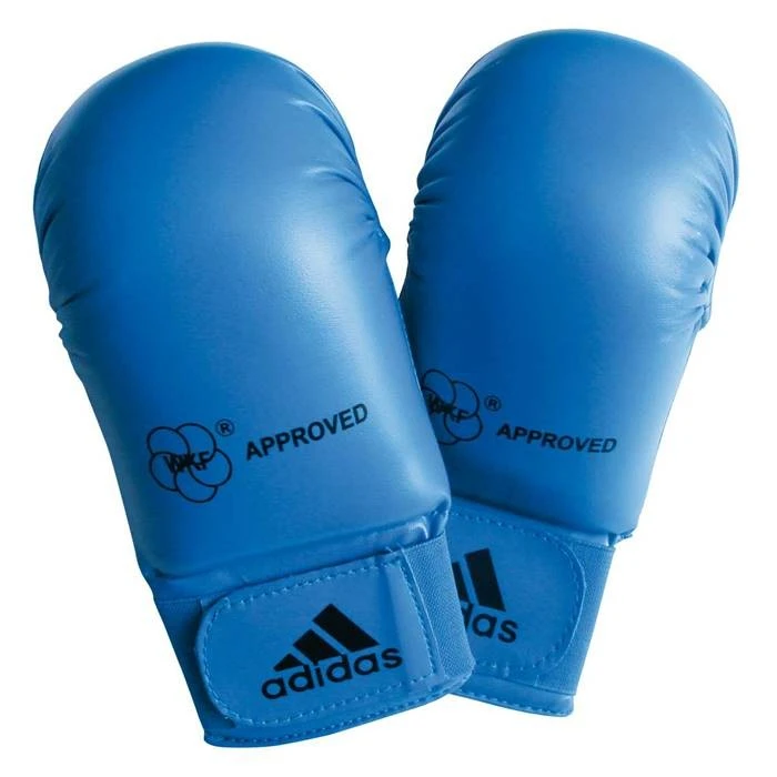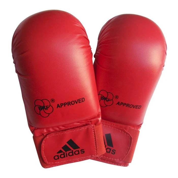 Guanti da Karate-Kumite Adidas omologati WKF, perfetti per gareggiare in tutte le competizioni nazionali e internazionali. Questi guanti sono realizzati in vinile, con un`imbottitura in poliuretano che protegge la mano. Indossandoli ti sentirai perfettamente a tuo agio grazie ai passanti per le dita e alla chiusura a velcro, che li renderà un tutt`uno con la mano. Disponibile anche la versione con protezione sul pollice, per vederla .