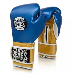 Qualità top e stile lussuoso ed elegante. I Guantoni Cleto Reyes Sparring CE6 Blu Zaffiro Oro sono un`edizione limitata. Per i tuoi allenamenti scegli questi guantoni esclusivi, realizzati completamente in pelle e fatti a mano. Dotati di chiusura con velcro e resistente imbottitura in schiuma di lattice naturale, i guantoni Cleto Reyes sono sottoposti a un trattamento idro-repellente che consente una maggiore durata. Progettati per i tuoi allenamenti di Pugilato, sono adatti anche per Kick boxing e Muay Thai. Questa sontuosa edizione speciale si distingue per la colorazione blu metallizzato, che richiama il colore degli zaffiri, abbinata a dettagli dorati e a piping bianco.