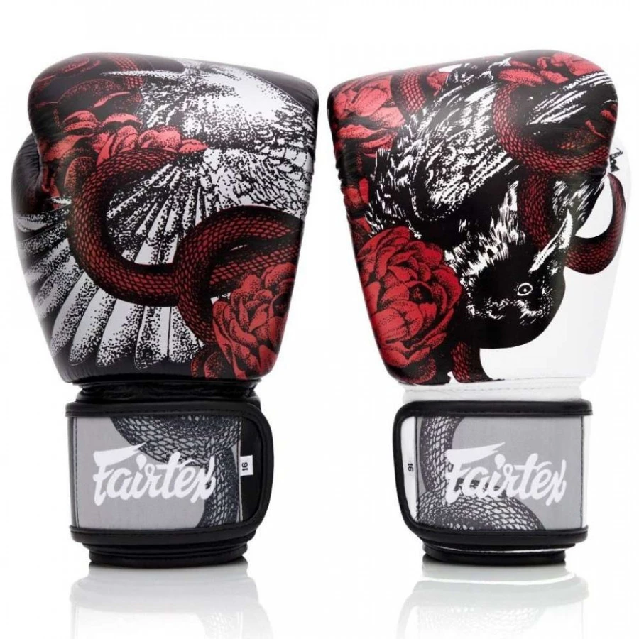Realizzati a mano in Thailandia, i Guantoni Fairtex BGV24 The Beauty of Survival si distinguono per la qualità artigianale altissima. The Beauty of Survival è il concept rappresentato dal disegno sul dorso dei guanti: un combattimento tra un corvo e un serpente con delle rose rosse di sfondo. Questo richiama la natura duplice della Muay Thai: da una parte la bellezza di questa disciplina e dall`altra parte gli aspetti più duri del lottare per sopravvivere o vincere. Due lati della medaglia uniti dalla grande passione con cui viene praticata dai Nak Muay di tutto il mondo. Realizzati con pelle pieno fiore e imbottitura a triplo strato, offrono il massimo assorbimento degli urti.