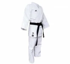 Il Karategi Adidas Kumite K220 “Club” WKF Climacool è un kimono da karate, indicato per chi pratica il kumite. E` composto da giacca e pantaloni leggeri e resistenti, con numerose parti rinforzate. I pantaloni hanno un elastico in vita, mentre la giacca ha una parte in mesh sulla schiena che permette la ventilazione del sudore e consente un combattimento asciutto e al massimo del comfort. Approvato WKF, ideale per principianti.