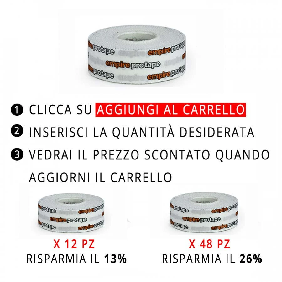 Empire Pro Tape è il miglior nastro da boxe in commercio. Indispensabile per avvolgere le tue mani per affrontare al meglio le tue prestazioni di sport da combattimento come Boxe, Kickboxing, Muay Thai e altre discipline. Realizzato al 100% in cotone, questo nastro sportivo risulta rigido e non elasticizzato: lo srotoli in modo controllato dalla bobina per un risultato professionale. Il Nastro Empire Pro Tape, della larghezza di 38 mm per 15 metri di lunghezza, ti offre ultra protezione per le mani. Dotato di bordino seghettato, è facile da strappare.