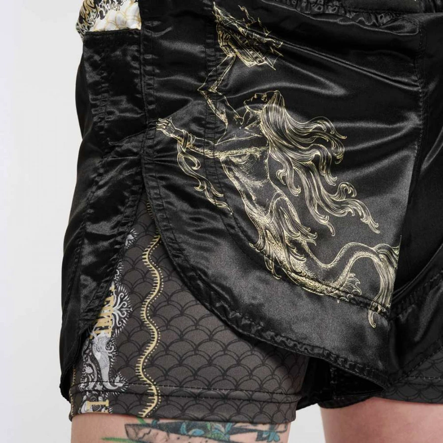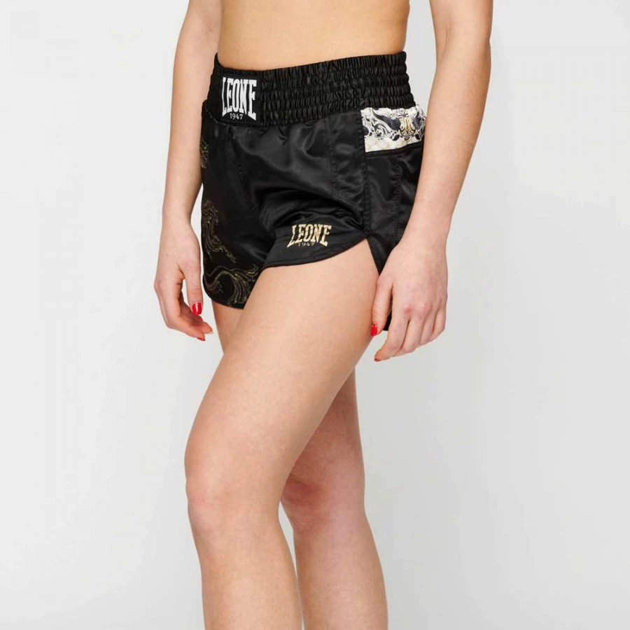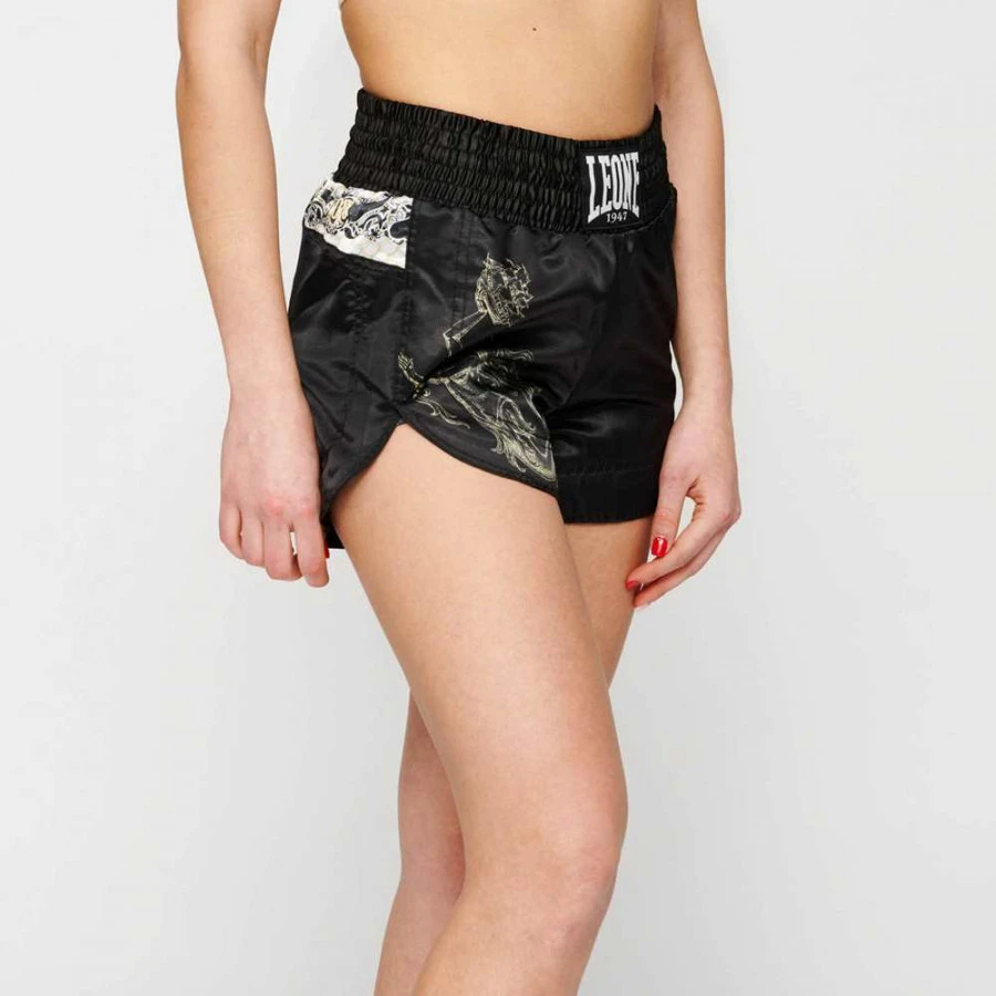 I Pantaloncini donna Leone Parthenope AB573 sono degli shorts ideali per Kick boxing e Muay Thai realizzati in satin di poliestere. Leggeri, comodi e versatili, sono dotati di sotto-pantaloncino a compressione con grafiche sublimate. I pantaloncini sono impreziositi dalle decorazioni marine e a tema Parthenope, sirena della mitologia.