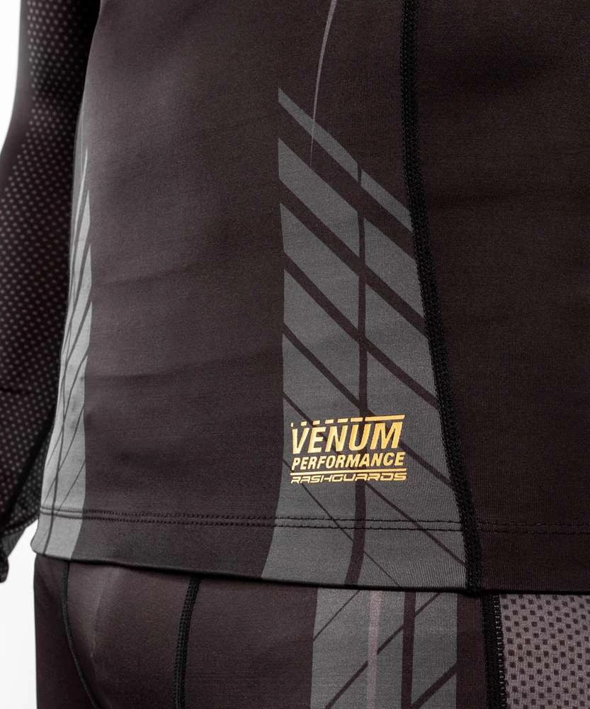 La Rashguard Venum Athletics Nero-oro è una t-shirt tecnica a compressione con maniche lunghe perfetta per gli sport da combattimento. In primo luogo protegge la parte superiore del corpo da sfregamenti e abrasioni causati dalla lotta. In più, il sistema a compressione favorisce le prestazioni e migliora i tempi di recupero muscolare. Gli inserti in mesh consentono la ventilazione, per una gestione ottimale dell`umidità. Caratterizzata da taglio aderente, la Rashguard Venum Athletics ha un effetto seconda pelle, sinonimo di massima libertà di movimento.