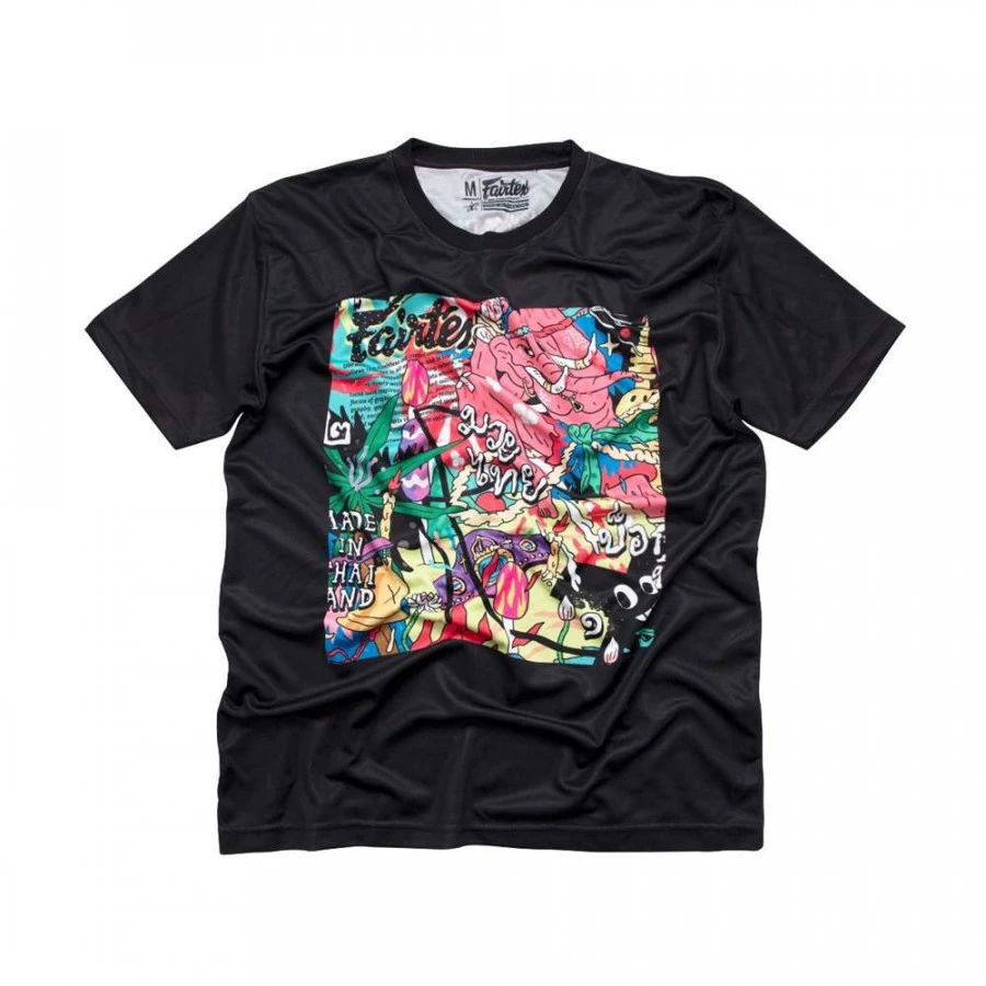 La T-shirt Fairtex X Urface TST183 è una maglietta realizzata in poliestere morbido e traspirante. Il tessuto è non solo anti-odore, ma anche anti-piega. L`ampia stampa rappresenta il tema grafico firmato dallo street artist thailandese Urface: la stampa è caratterizzata da colori vivaci e ti dona un look originale e inconfondibile.