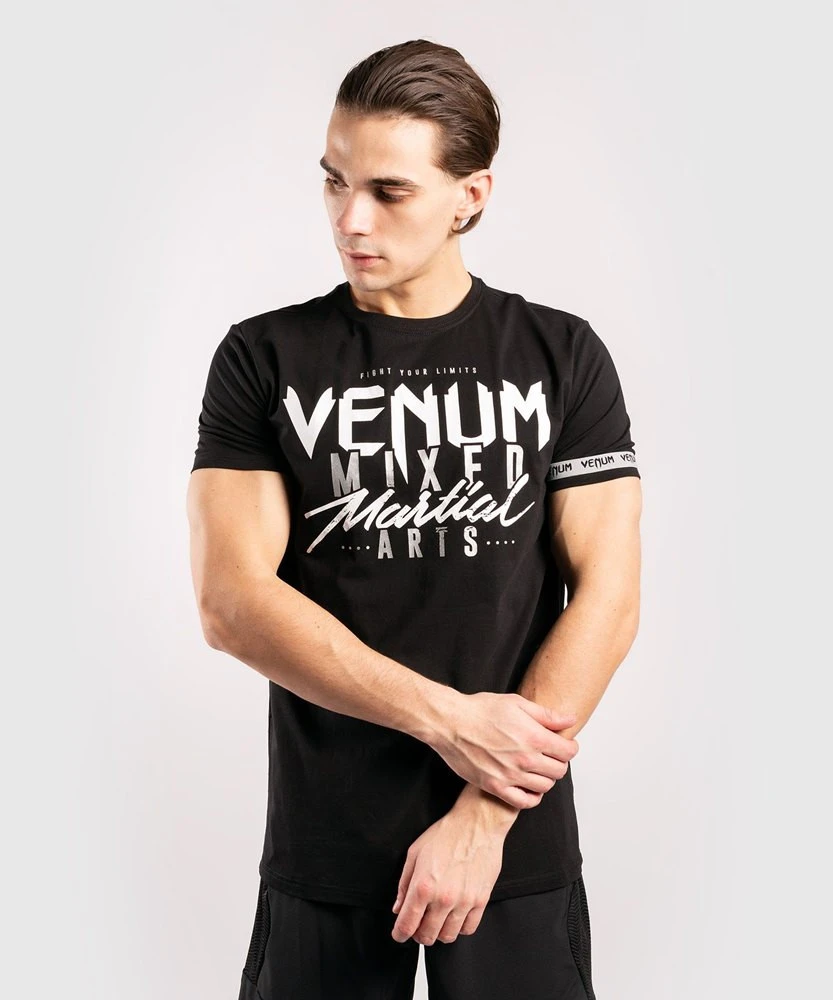Le arti marziali miste sono la tua passione? Non lasciarti scappare la T-shirt Venum MMA Classic! Una maglietta in cotone che esprime la tua anima combattiva, ideale per l`allenamento e per il tempo libero. La stampa serigrafata Venum Mixed Martial Arts – Fight Your Limits ti conferisce un look audace, da 100% fighter. La fascetta con logo sulla manica aggiunge un tocco autentico e originale.