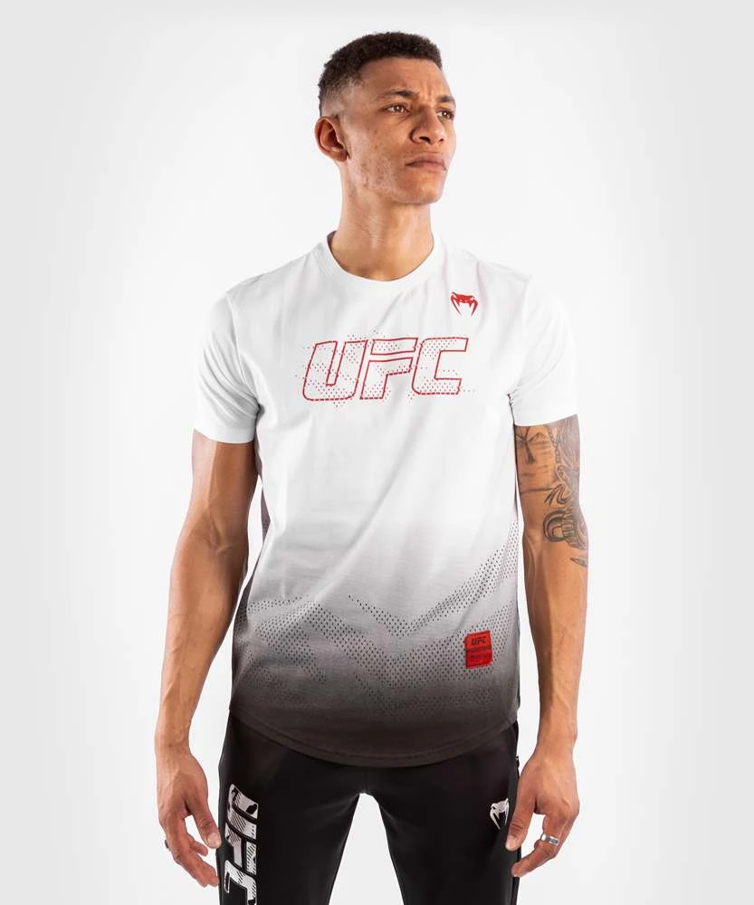 Più che una semplice maglietta, la T-shirt Venum UFC Authentic Fight Week è un vero must have: un capo immancabile nel guardaroba di fighter e fan delle MMA. Leggermente elastica e dal taglio aderente, questa t-shirt è progettata per offrire comfort e stile durante allenamento e tempo libero. Caratterizzata da un look audace, viene indossata dai campioni UFC durante la settimana che precede l`incontro, abbinata agli altri capi della linea Fight Week.