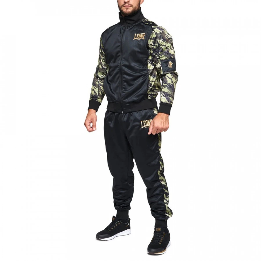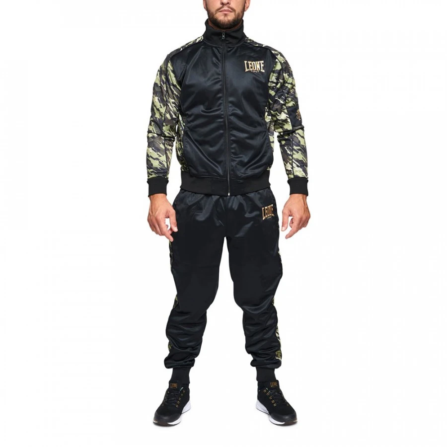 Ti accompagna nello sport facendoti sentire sempre comodo. E` perfetta per un look rilassato e informale nel tuo tempo libero. La tuta Leone Neo Camo, composta da giacca con zip e pantaloni, reinterpreta lo stile mimetico in modo dinamico e di tendenza. Confortevole e versatile grazie anche ai polsini, la tuta Leone Neo Camo è disponibile in due versioni: nera con texture camouflage sui toni del verde oppure chiara con texture camouflage di colore grigio.